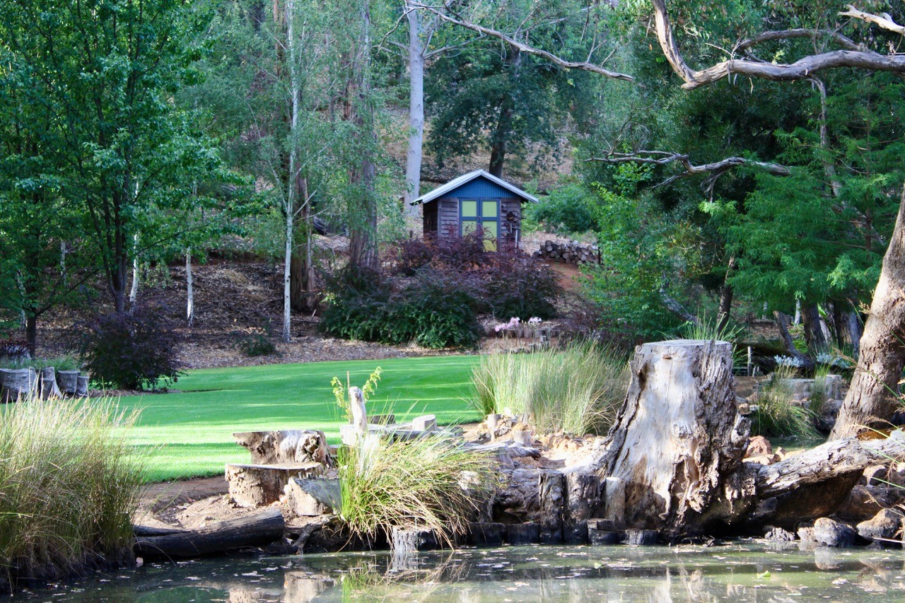 - Permanent creek with four ponds, rain forest and water lilies. Many shady deciduous trees over grassed area.