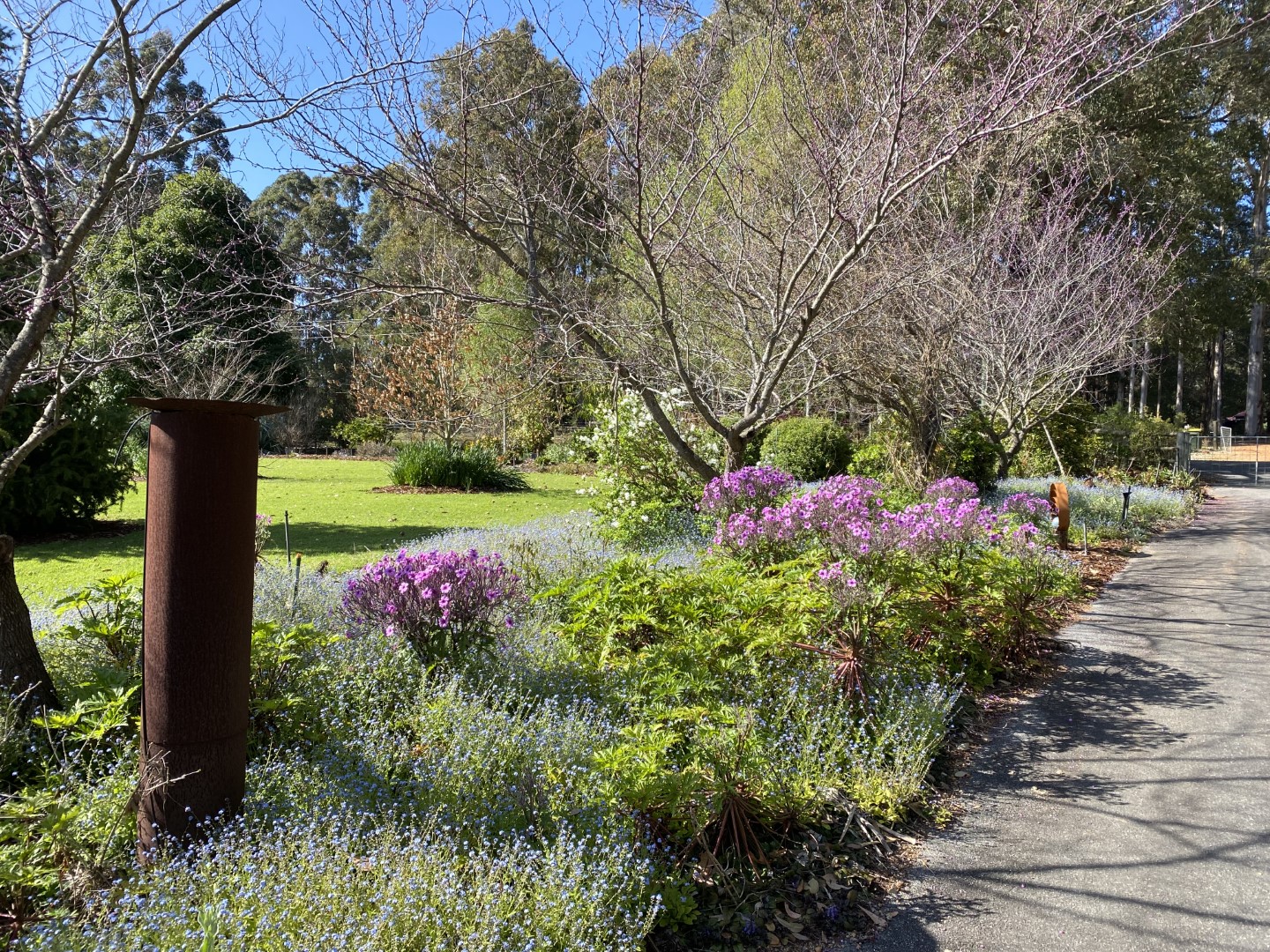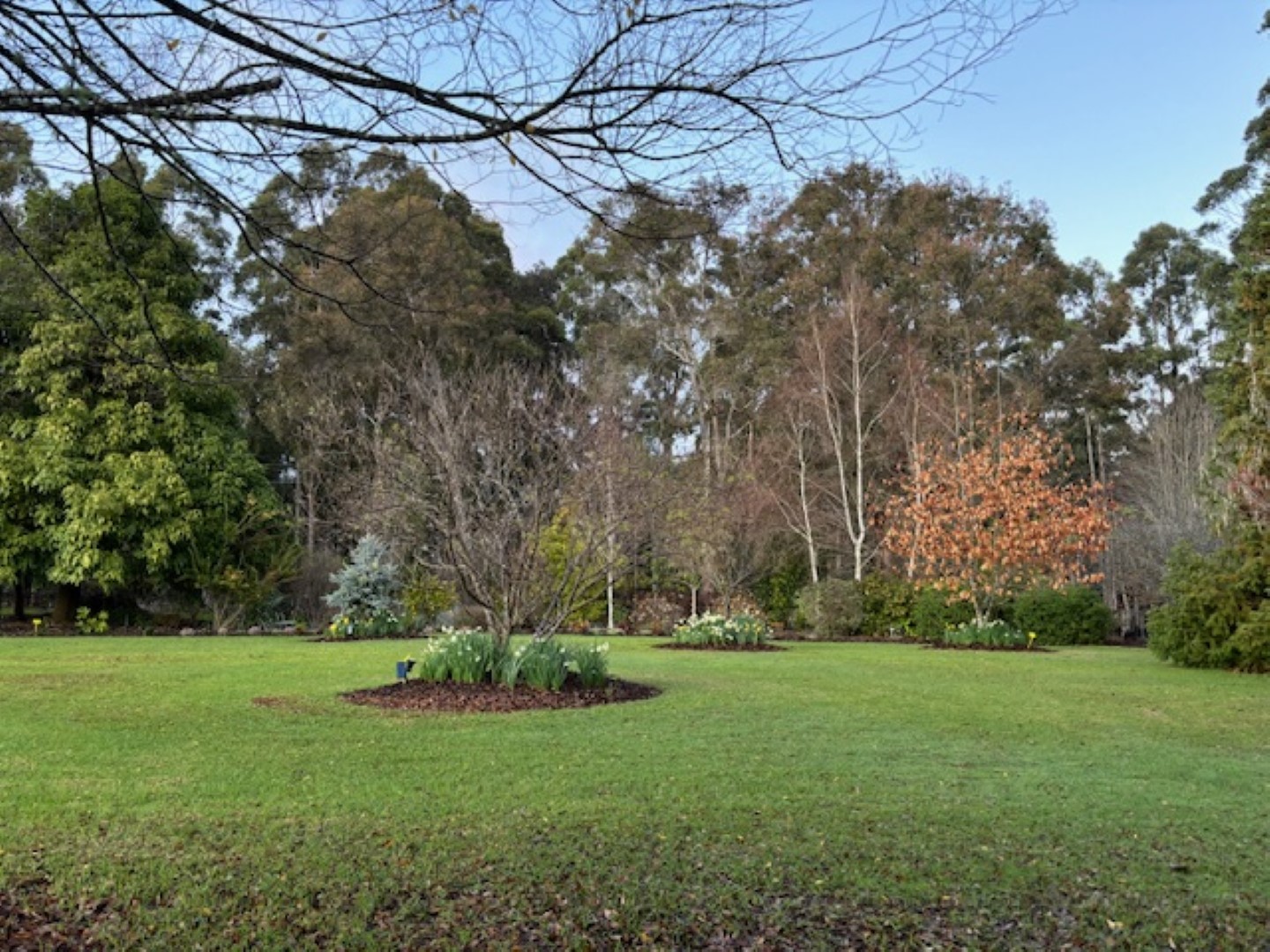Built over 5 acres we have a beautiful country garden now nearly 12 years old and looking amazing. Rolling lawns with gardens full of exotic trees and plants. Located next to a Karri forest facing north overlooking a dam. We hope you will enjoy.