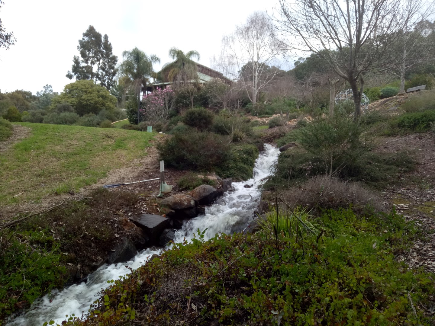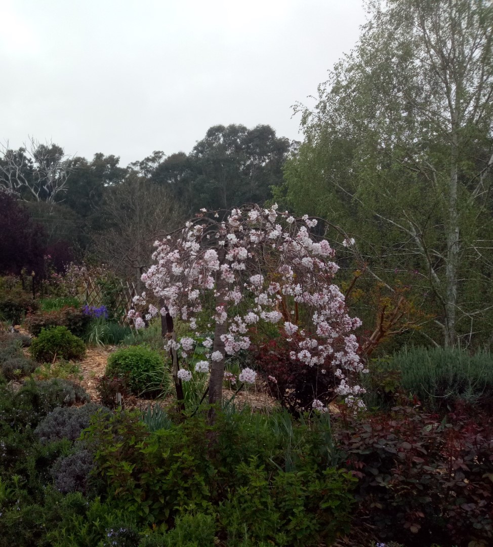 A resilient property with a diverse, mostly dry garden. Features include a permaculture-inspired setup with rotational chook pen and veggie garden, former netted orchard. Bird corridors, woodlot with an understory, dams with water-edge plants, Cottage Garden, the makings of a Japanese garden, succulents, native plants, garden art and much more to explore.