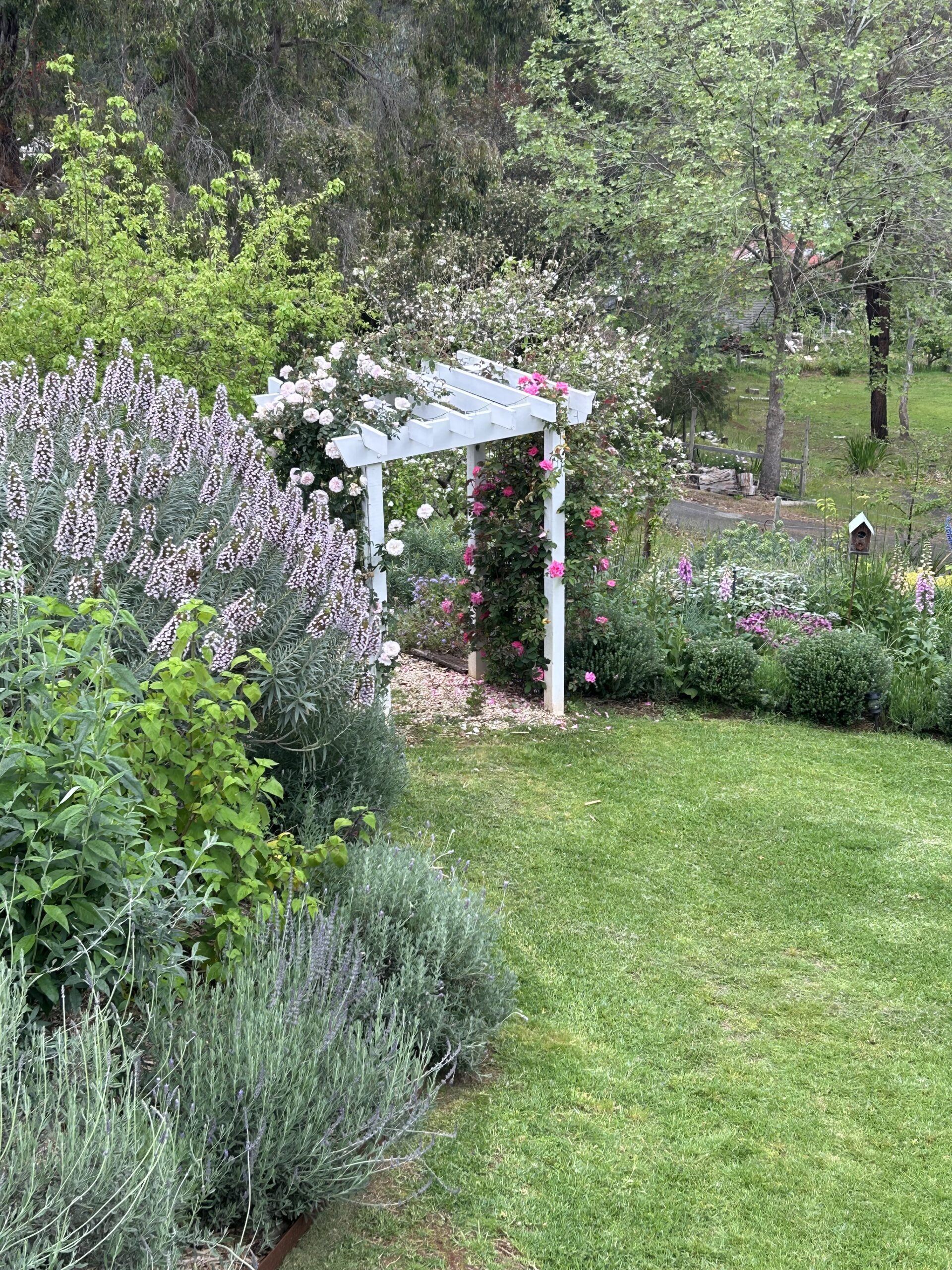 Chelsdon Cottage, nestled close to Bridgetown’s bustling main street, boasts a captivating garden with winding paths that weave through vibrant perennial beds, aromatic roses, and delicate ornamental grasses. The dramatic slopes of the terrain offer views of the garden and valley, crafting picturesque. Cozy seating areas invite you to pause and soak in the garden as you stroll through the landscape.
